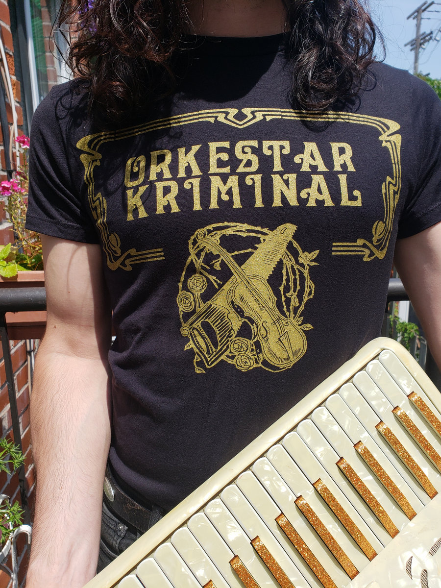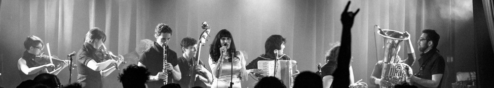 Along with their Yiddish gangster repertoire, Orkestar Kriminal has absorbed the Rebetika Mortika hash den anthems of the 1930s Greek underground. They can also be found performing in Khmer, Spanish, Danish, Romani, Ladino, Russian, Vietnamese, Hebrew or whatever other tongue might attract them. So long as the tune is catchy and a little shady, they'll give it their best shot! ... more